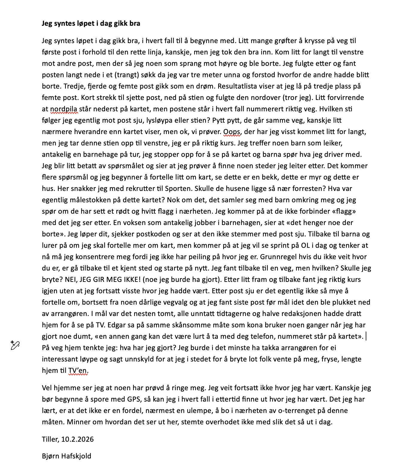 Bjørn Hafskjolds betraktninger etter Gubbeløp 19 i Tillermarka 10.02.2026: